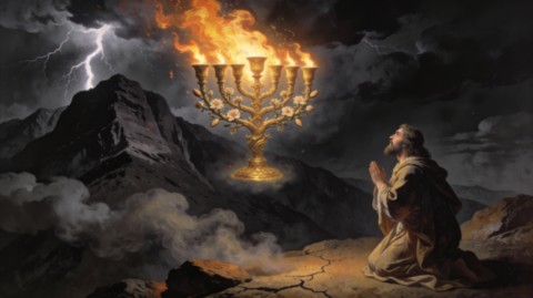 Nous parlons ici de la Ménorah parce qu'elle est décrite comme une œuvre d'inspiration divine, au même titre que l'Arche ou le Tabernacle. Dans l'Exode, le Très-Haut demande à Moïse de faire fabriquer le Tabernacle, l'Arche, la table des pains de proposition, l'autel des parfums, et, parmi ces objets, un Chandelier d'or pur : « Tu feras un Chandelier d'or pur ; ce Chandelier sera fait d'or battu; son pied, sa tige, ses calices, ses pommes et ses fleurs seront d'une même pièce. Six branches sortiront de ses côtés… » (Ex 25, 31-32). La Torah insiste : « Regarde, et fais selon le modèle qui t'est montré sur la montagne » (Ex 25, 40), ce verset devenant, pour la tradition, l'indice d'un archétype céleste que l'artisan humain ne fait que recevoir et traduire.
