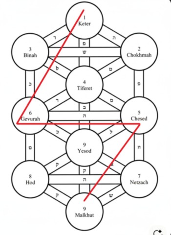La colonne de droite (Rigueur / Din) : Hokhmah, Guevourah, Netzah, la force, la différenciation, le principe actif